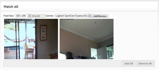 You can watch multiple cameras at once over the web with the "Watch All" page. Access this page from the main content viewer link at the bottom or from the menu list on your account page. You can add whatever feeds you like to this page and specify what resolutions you want them to play at. iSpyConnect will remember your configuration if you refresh the page.
